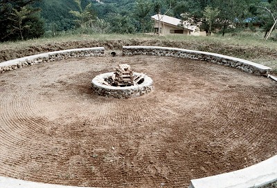 ファイヤーの周囲に余った木でサークルを作って完成。 |